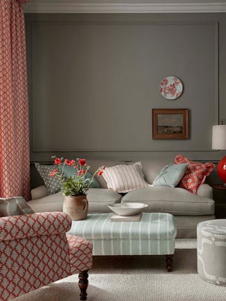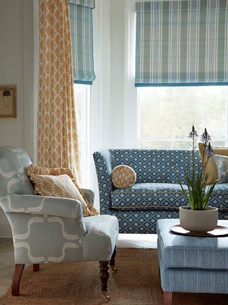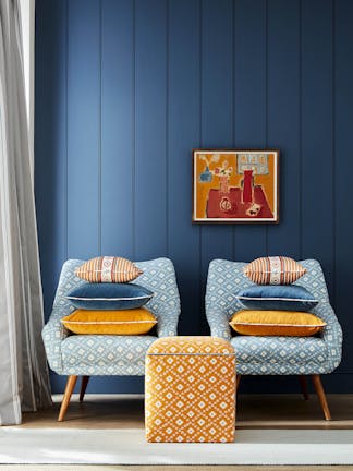3) CIRENCESTER沙发:播种和分散矢车菊SOW-16英镑/米,管道铺设在Plain Linen Union稻草PLAIN-LU-9 58 /地铁。萨珀顿扶手椅:沿着花园小径鸭蛋PATH-8£64 /地铁。安伯利脚凳:条纹和Dash矢车菊,勿忘我,丹宁SD-16-14-6£59 /地铁。幕布:野蕨赭色FERN-42£59 /地铁。罗马百叶窗:主要面料和箱体外壳法语滴答声鸭蛋,牛仔布FT-8-6£59 /地铁;底边为平纹亚麻布矢车菊PLAIN-LU-16£58 /地铁。缓冲(从左):野蕨赭色FER-42;小蕨类植物赭色LITTLE-42票价均为59英镑/米。道具:罗伯特顿黄麻地毯,泰特和达比。墙漆:熟石灰深,小格林。欧宝体肓app