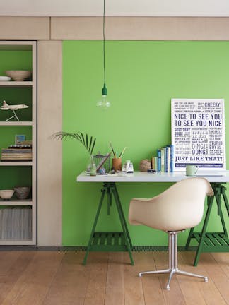 使用颜色和图案创建一个在家的工作空间,从而激发创造力并有助于集中精力。