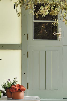 为您的前门选择阴影的灵感,阅读我们的关于木材外蛋壳漆的问答。