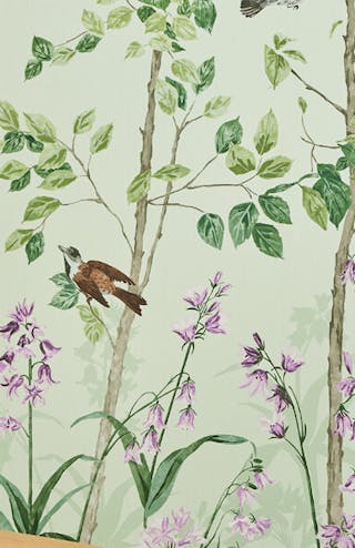 这幅优雅的壁画(156厘米x 325厘米)以鸟类、蜜蜂和风信子为主题,由诺福克菲尔布里格大厅发现的剩余墙纸碎片创作而成。欧宝电竞苹果下载app最初在条纹背景上,剩余的原始材料经过了改编、改造和重新着色,以适应当代室内设计。有四种宁静的颜色可供选择,包括软绿色、粉色和蓝色,以及中性。